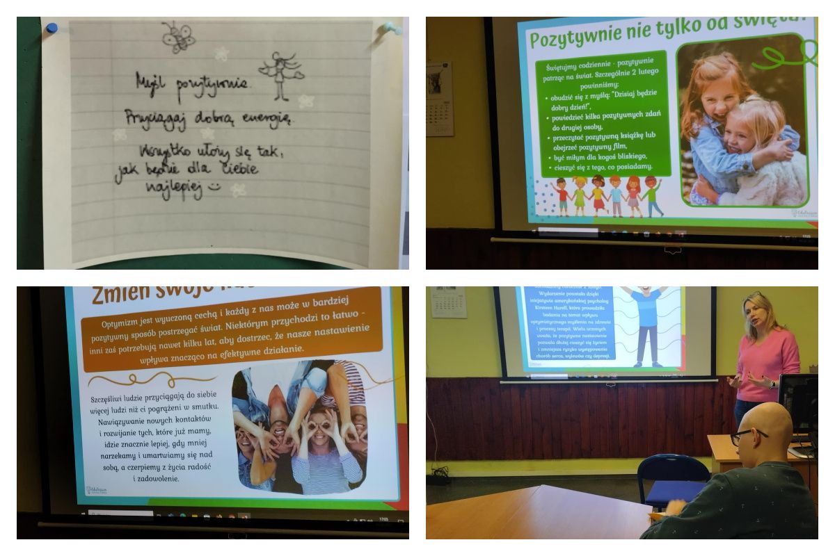 Wczoraj młodzież internacka wzięła udział w zajęciach dotyczących Dnia Pozytywnego Myślenia. Młodzież wysłuchała przygotowanej prezentacji, podjęła dyskusję nt. pozytywnego nastawienia do życia i samego siebie. Na koniec każdy z uczestników napisał kilka miłych słów o innych .